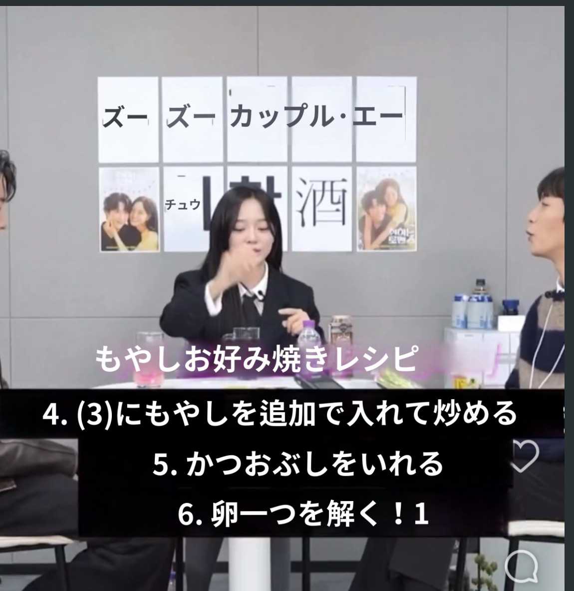 夜食のオススメに「お好み焼き」とd( ̄  ̄)な日本語で答えるヒョソプ君🩷韓国では「ジョン(チヂミ)」ですよね。でも🙋♀️「お好み焼き」作れる人知ってます🙃でも時期も違うしきっと偶然ですね💦 #AhnHyoSeop #KIMSEJEONG #OKONOMIYAKI pic.twitter.com/cbnMDQk3r3