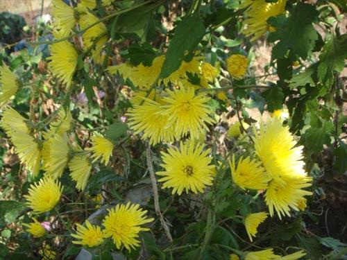 今年も、我が農園の食用菊が開花を始めています。 山形産の紫の食用菊は『もって菊・もってのほか』と呼ばれています。この一風変わった名前の由来は、「天皇の御紋である菊の花を食べるとはもってのほか」「もってのほか(思っていたよりもずっと)おいしい」と言った事からと。 我が家の花は黄色。何もしていませんが、毎年この時期に律儀に咲いてくれるのです。菊そのものは、古代より中国で延命長寿の花として菊茶・菊花酒、漢方薬として飲まれていたそうです。江戸時代から民間で食されるようになり~松尾芭蕉は、菊を好んで食したとのこと。花を摘んで持ち帰りました。 そして花びらを1個、1個摘んで剥ぎ取りザルへ。きれいに洗って茹で立てを~ポン酢で。落花生と同様に季節の移ろいを感じながらビール片手に。