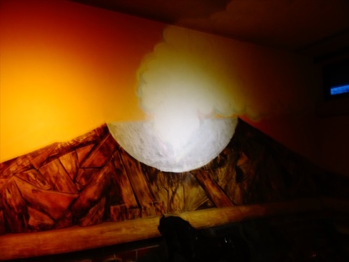 この日の仕事を終え阿蘇の宿へ。宿の壁には阿蘇の噴火している姿を表現した壁画が描かれていた。夕食を楽しむ。そして翌早朝はホテルの温泉へ。 早朝5時過ぎで静かな空間。 着替室。 宿泊者専用の内湯。緑白色のにごり湯を独り占め。風呂の後はバイキング方式の朝食。 ホテルロビーからの雨の庭園。 館内の土産物売り場も人影はなし。 ホテルの隣にあるどんどこ湯まで散策。ホテル本館。 紅葉も終わりに近づいていた。 どんどこ湯までの渡り廊下を進む。 ようやく入り口近くに。 どんどこ湯棟正面。広大な敷地に阿蘇の火山石をふんだんに使った庭園露天風呂が自慢。溶岩石と自然木を大胆に組み合わせたダイナミックな男性庭園露天風呂はお風呂が4つ、日本庭園をイメージし、溶岩石を美しく配置した女性庭園露天風呂はお風呂が3つ。木造彫刻の豚が迎えてくれた。 温泉につかっていい気分。 こちらは早朝は営業休止中。湯量豊富な源泉かけ流し。美人の湯と称される硫酸塩泉が湧出していると。渡り廊下の両側の落ち葉の絨毯が雨に濡れて美しかった。 ホテル本館と手前はホテルフロント棟。 カラフルな折り鶴も美しかった。 雨のホテル玄関。 そしてこの日も近くにある事業所へ。