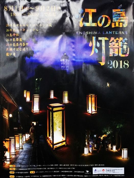 8月25日(土)には旅友と3人で「かまくら 長谷の灯かり」を訪ねましたがこの日8月31日(金)には、『江の島 灯籠 2018』に行って来ました。8/1(水)~9/2(日)の日程で江の島サムエル・コッキング苑、江の島シーキャンドル、江島神社、江の島岩屋、江の島島内各所、片瀬すばな通り、龍口寺で『江の島 灯籠 2018』が開催されているのを「かまくら 長谷の灯かり」を訪ねる途中の江ノ電・藤沢駅のポスターで知ったのです。夏の夕どきに江の島の街を照らす灯籠の灯りを楽しむ事が出来るのです。小田急線・片瀬江ノ島駅。いつもの弁天橋を渡る。海沿いのマンションが夕陽に照らされていました。国道134号線 片瀬橋越しの江の島。弁天橋の中央にある『雲の形』の像。地下道に入り国道134号線を渡る。「江ノ島大橋」は車両専用の橋のことで、それに並行して歩行者専用の橋梁である「江ノ島弁天橋」に向かって進む。その「江ノ島弁天橋」手前には夕陽を背景に龍が彫られた巨大灯籠が迎えてくれた。「江ノ島大橋」側の巨大灯籠。江ノ島片瀬漁港先の防波堤は夕陽を浴びて。江の島をバックに記念写真の撮れる江ノ島弁天橋入口の撮影ポイント。地震⇒津波⇒避難 と書かれた看板の先には赤く染まる片瀬の海が。しかし、この日は富士山は雲に隠れて見えなかった。「江ノ島弁天橋」からの江の島。湘南大堤防先端の湘南港灯台。夕陽に赤く染まった砂浜。江の島の象徴ともいえる江の島白灯台。江の島展望灯台(江の島シーキャンドル)の灯りは未だ。「江ノ島弁天橋」の灯りは漸く点灯。この日は台風21号の影響か、「江ノ島大橋」にぶつかった波が白波となり舞い上がる。そして江島神社までの参道入口の鳥居前に。この青銅製の鳥居は、1747年(延享4年)に建立され、1821年(文政4年)に再建されたもの。鋳物師:粉川市正藤原国信、世話人:浅草新鳥越の八百屋喜四郎、願主:新吉原の扇屋宇衛門、大黒屋勘四郎、松葉屋半蔵といった名が銘文に刻まれている。寄進者の中には花魁(おいらん)代々山という名もある。この鳥居から、瑞心門前の朱塗りの鳥居までが江島神社の門前町で、旅館、土産物屋、食堂などが並んでいる。鳥居には龍が施された「江島大明神」の額が掲げられているが、以前は「大弁財天」という額が掲げられていたとのこと。右手奥に江の島アイランドスパ本館。江の島アイランドスパ本館前のウッドデッキから「江ノ島弁天橋」を振り返る。参道を進む。左手に『江ノ島 はろうきてぃ茶寮』。関東初のハローキティをテーマにした和カフェ「江ノ島はろうきてぃ茶寮」が2016年12月オープン。ウィキペディアによると『主人公、キティ・ホワイト (Kitty White) は、猫をモチーフに擬人化したキャラクターで、向かって右側の耳の付け根にトレードマークである赤いリボン、またはそれに類する飾りをつけているのが特徴(写真左)。サンリオを代表する看板キャラクターである。通称は「キティちゃん」。「キティー」は誤表記であり、正しくは「キティ」である。』と。向かって右側にいるのが、キティのボーイフレンドのダニエル・スター(Daniel Star)。岩本楼は老舗旅館。前身は金亀山与願寺(現:江島神社)の別当職を務めた岩本院で、鎌倉時代以来の歴史を持つ。江戸時代中期以降、江の島は江戸から手軽に行ける観光地として栄え、岩本院も宿坊として栄えた。文久2年(1862年)初演の歌舞伎、青砥稿花紅彩画(白浪五人男)に登場する弁天小僧は岩本院の稚児をモデルにしたと言われている。 1873年(明治6年)、神仏分離礼により与願寺は廃され江島神社となり、岩本院も翌1874年に岩本楼と改名し旅館となったのだと。10月中にはここで開かれる宿泊付きの小&中学校同窓会に出席予定なのである。弁財天仲見世通りを抜けると第一に見えてくるのが、この朱の鳥居。彩り鮮やかなので目立つ鳥居。鳥居の先には瑞心門が。猫がノンビリと。『鋏塚は昭和39年6月当協會創立35周年を記念して長年使用に耐えた花鋏を供養し斯道の発展を祈念すべく建立されたもので花の字を模した揮毫は当協會顧問日本画家飯田九一先生の筆になるものです。建立25周年協會創立60周年を記念して碑周辺を整備し改めて斯道の発展に寄與せんとするものです。平成元年11月大日本花道協會』と説明板に。「江ノ島エスカー」乗り場が左手に。江の島にある上り専用の屋外有料エスカレーター。江島神社入り口の石段上り口から江の島の頂上に至る4連のエスカレーターであり、5分ほどで頂上まで到達することができる。江ノ島電鉄が運用。灯の入った灯籠には江の島の伝説「天女」と江の島の姿が。中央の江島神社の社紋(○部分)は、北条家の家紋「三枚の鱗」の伝説にちなみ考案されたもので、「向い波の中の三つの鱗」を表現しているのだと。時間は18時過ぎ。『太平記』によれば、建久三年(1190年)鎌倉幕府を司った北条時政が、子孫繁栄を願うため江の島の御窟(現在の岩屋)に参籠したところ、満願の夜に弁財天が現れました。時政の願いを叶えることを