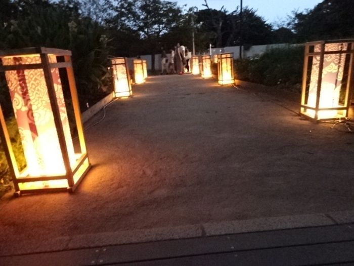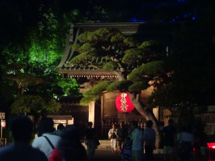 『鎌倉散策 目次』👈リンクそしてこの日は、時間に余裕がなかったので収玄寺はパス。よって御霊神社から徒歩にて10分もかからず、鎌倉:長谷寺に到着。正面山門を参道からズームで。正面の松越しに山門を。斜めから。真っ赤な赤い提灯。長谷寺は浄土宗系統の単立寺院。山号を海光山、院号を慈照院と称し、長谷観音と通称されている。本尊は十一面観音、開山は僧侶の徳道上人とされる。坂東三十三箇所観音霊場の第四番札所。長谷寺も、この夜は無料で境内へ。長谷寺 配置案内図。長谷寺は観音山の裾野に広がる下境内と、その中腹に切り開かれた上境内の二つに境内地が分かれており、入山口でもある下境内は、妙智池と放生池の2つの池が配され、その周囲を散策できる回遊式庭園となっている。 【http://www.hasedera.jp/about/】より手水場。本堂への階段を上がる。参道の上のモミジも緑に輝く。奪衣婆(だつえば)と懸衣爺(けんねおう)が座っている「卍池」。別の角度から。地蔵堂の横。地蔵堂の裏には千体地蔵が。そして階段を更に上がり阿弥陀堂前に。阿弥陀堂内の阿弥陀如来坐像は、伝承に曰く、鎌倉幕府初代将軍である源頼朝が、自身の42歳の厄除けのために建立したものと。そしてその隣にあるのが観音堂。演出テーマは『荘厳な観音堂と美しい樹木や池に囲まれた境内、お参りする人々に配られる提灯などが「つながり」を演出する灯かり』であると。観音堂 正面。阿弥陀堂から観音堂を横から。「長谷観音」と書かれた扁額。本尊の十一面観音菩薩像は内部からは撮影禁止とのことで、外部からしゃがんでズームで。観音堂前の境内の足下もライトアップされていた。その先には提灯を持つ多くの観光客の姿が。石畳も美しく。観音ミュージアム前の金色の観音様がやさしい微笑みで。観音ミュージアムは、2015年(平成27年)10月18日にリニューアルオープン。長谷寺の本尊「観音菩薩」を主題とした博物館。観音ミュージアム前の如来坐像と左右に四天王。経蔵も青くライトアップされて。経蔵は一切経を収める建物。 経蔵内にある「輪蔵」と呼ばれる回転式の書架を一回転させると、全ての経を読んだのと同じ功徳があるといわれている。 現在は「輪蔵」保護のため、回転させることができるのは観音様の縁日である18日に限られているとのこと。経蔵の先の竹林もライトアップされて美しかった。見晴台からの鎌倉の海の上には満月が。満月をズームで。観音堂の色の変化を再び楽しむ。青一色の幽玄そして幻想的な世界。青の観音堂と緑の阿弥陀堂。階段を下って、弁天堂方面に。「和み地蔵」。長谷寺での記念写真のスポットにもなっている弁天堂前の「和み地蔵」。別の場所の良縁地蔵も仲良く。何回来ても癒やされる場所。書院・写経場の庭の枯山水を訪ねる。白砂に描かれる砂紋の波が様々な色に変化。ズームで。隣の方の提灯と共に。青の海が赤の海の如くに変わる。ズームで。光の陰影も美しく。静かな海の如く。触っても冷たい水は無いのであるが、この砂紋があるからこそ、この猛暑の宵の中でも水を感じることができたのであった。ズームで。長谷寺の提灯貸し出しコーナーのLEDも刻々と色が変化するのであった百日紅(サルスベリ)もライトアップされて。中国の伝説で、恋人と百日後に逢うことを約束した乙女が、約束の百日目の直前に他界、その死んだ日の後に咲いたという花.日本では元禄時代の園芸書「花譜(かふ)」に、「紅花が100日間咲く」と説明があったので、”百日紅(ひゃくじつこう)”。また、木の肌が滑らかなので、猿も滑ることから、”猿滑(さるすべり)”とついた。子供の頃、祖母から聞いたのがこの話”猿滑(さるすべり)”であったが。木の肌を掻くとくすぐったそうなので”クスグリノキ”という別名もあると。百日紅だけでも、いろいろと勉強になるのです。外の山門手前にあった石仏。そして今回は時間の関係で、パスしてしまった収玄寺と鎌倉大仏殿高徳院の2寺の灯りを転載させていただきました。収玄寺 【https://twitter.com/hashtag/%E5%8F%8E%E7%8E%84%E5%AF%BA?src=hash】より鎌倉大仏殿高徳院。 【https://www.shiho-tax.com/kamakura-hase-no-akari-in-2018/】より ・・・つづく・・・