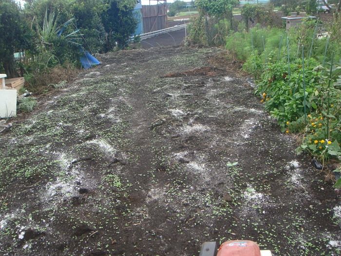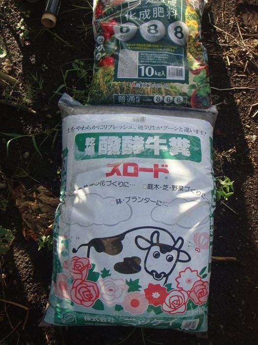 この日は、冬野菜の植え付けように苗床造りを行いました。肥料は化成肥料と発酵鶏糞、そして牛糞です。先日事前に、堆肥を畑全面に蒔きその後に耕しました。先日、お隣の畑の方に耕運機をお借りし、耕しておきました。化成と牛糞を撒きました。葉物野菜には牛糞を。そして穴あきマルチを敷きました。この場所にブロッコリー、カリフラワー、白菜を予定しています。こちらは、ミツバチの巣箱の裏側。こちらには、大根の種蒔き、春菊、レタス、葉ボタンの植え付けを予定しています。作業をしていると、奥の自分の畑を大型トラクターで耕していたIさんが、もう1回耕してくれると。アッと言う間に、見事に深く美しく耕してくれたのです。そしてこの場所には、シルバーマルチを敷きました。この場所には、11月末にソラ豆を植え付ける予定にしています。肥料としてか、堆肥、化成、発酵鶏糞をたっぷりと。まだマルチ敷きには早いのですが、耕したままにしておくと、アッと言う間に雑草が生えてくるので、その防止のために早めにマルチを敷いたのです。シルバーマルチは、ソラ豆の天敵であるアブラムシはキラキラ反射する光を嫌うので、シルバーフィルムマルチが有効なのです。まだナスやピーマンは収穫できますので、そのままにしています。そしてナスは更新剪定を行いました。バテて体力がなくなると、それまで順調に実をつけていたナスも、花をつけなくなったり、開花しても受粉不良などで実が育たなくなって来るのです。ナスの更新剪定を行い、同時に根切りと追肥をすることで、しばし株を休ませリフレッシュさせるのです。選定によりしばらく休み、体力を取り戻したナスは、涼しくなってきた頃から、また花を咲かせ実を付け始め、美味な秋ナスを楽しむことが出来るのです。そしてこの3連休に植え付けを行う予定でしたが、昨日(9/15)は朝から雨のため植え付けは出来ませんでした。そして今朝は、雨が上がっていますので、植え付けにいざ出陣。