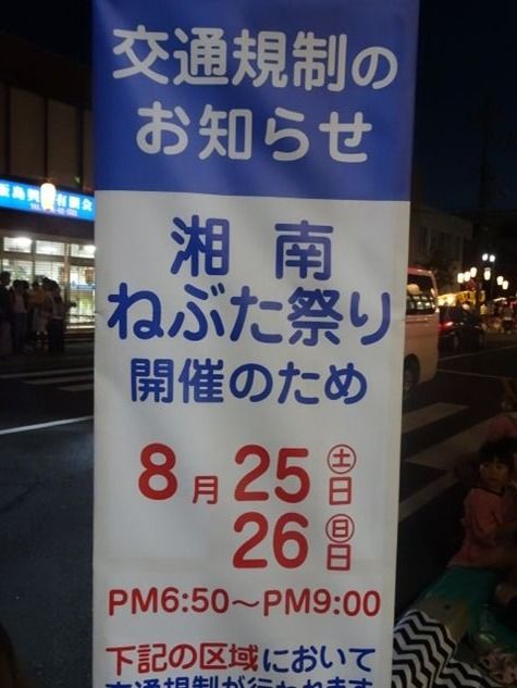 「第22回湘南ねぶた祭り」が我が地元の駅の周辺で、2018年8/25(土)・26(日)に開催されました。最終日の26(日)に19時からねぶたが練り歩くので見に行って来ました。駅前道路には、「交通規制のお知らせ」が。今年の「ねぶた」のポスター。そしてスーパーの駐車場ではこの日の開会のセレモニーが既にスタートしていた。地元出身の衆議院議員がお祝いの挨拶中。そして今年のねぶた「鬼若丸」が出番を待っていた。「鬼若丸」は幼少の頃の弁慶の事。「鬼若丸」の顔をズームで。大きな赤い鯉の姿も。幼少の頃の弁慶は、暴れん坊で手がつけられなくて比叡山に預けられたのだ。その暴れん坊の鬼若丸が八尺(2.4m)もある鯉を退治したのはあまりにも有名な話。跳人(はねと)も今や遅しと。囃子の山車。後ろには大太鼓が3台。かわいい人気キャラクターの山車。アンパンマン。地域町内会の子供達やその保護者の皆さんが、手作りした山車。役員の着る白の半被の背中には「湘南ねぶた祭り」のシンボルマークが。金魚。鮮やかな色のこの金魚の山車は、養護学校の生徒さんが紙を貼り色を塗った作品。すっかり地元でおなじみの“湘南ねぶた”も今年で22回目。地元の方々の“地域を愛する心”によって、大切に引き継がれて来ているのです。毎年、市内、市外から多くの来場者が訪れ、会場は大賑わい。道路脇には多くの家族連れが、ブルーシートを敷き山車の出番を待っていました。ねぶたの運行は両日共に19:00~21:00。そして漸く山車のスタートの19:00に。遠くに「鬼若丸」の山車の姿が。本場青森ねぶたから貸し出されたねぶたは、圧巻の姿。湘南にいながら、本場のねぶたを見られる貴重な機会。跳人(はねと)と呼ばれる踊り手が「らっせーらー、らっせーらー」の掛け声とともに跳ね歩き、会場は熱気と興奮に包まれたのです。先頭の山車。知った方の名前がいくつも。先頭の提灯。「湘南ねぶた」の文字が。かわいい人気キャラクターの山車が続く。ドラエモン。アンパンマン。誰でも自由に踊り手の跳人(はねと)として参加できるのが、ねぶた祭の魅力のひとつ。跳人(はねと)も暑さに負けじと。踊りのグループが続く。「鬼若丸」が目の前に。迫力十分。刀を右手に持って。裏側(送り絵と呼ばれる裏姿)に描かれているのは「弁慶 安宅の関」。山伏姿に変装した弁慶。鬼気迫る勢いで数珠を揉む弁慶。山車が回転を始めた。その後を大太鼓が。山車の練りを見送った後は、近くの公園の屋台を散策。焼きそば屋。金魚すくい。冷やしキュウリ。射的屋。不思議&不気味な飲み物を発見。「点滴ジュース」の文字が。点滴ジュースがぶら下がっていた。どの様な味なのであろうか?ボールすくい。美味しそうなじゃがバター。湘南ねぶたは資金難に陥っているようで、主催者が挨拶の中で、「大きな赤字が出ており、開催が危ぶまれている」と、去年から盛んに。果たして来年はどうなるのでしょうか。