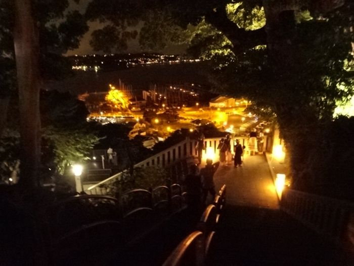 中津宮からの下り階段から見たヨットハーバー。階段途中からの参道の灯籠。そして展望台からのヨットハーバー。再び『WorldSailing Japan 2018-2020 World Cup Series』。辺津宮方面への参道。ヨットハーバーのクラブハウス。辺津宮への階段と石鳥居。そして奥に朱の辺津宮が見えて来た。灯籠が両側に。八坂神社の前にあるむすびの樹は縁結びの祈願をするには絶好の場所。辺津宮の境内に戻る。見事な赤に輝く奉安殿は、辺津宮の左側に。人の数も少なく。重要文化財でもある弁財天様が祀られている奉安殿。御神籤越しの奉安殿。辺津宮ご社殿の向かい側には銭洗い白龍王が鎮座。不浄の念を洗い流すことで金運がアップするのだと。辺津宮。『奉祝 天皇陛下御即位三十年』と書かれた幟。辺津宮を再び正面から。茅の輪潜り。斜めから。階段の下に手水舎。階段には樹木の影が。参道の階段を登る途中にあるのが商売繁盛のパワースポット福石。福石は盲目の鍼灸師、杉山検校(けんぎょう)という方のゆかりの石。「弁財天童子石像」。江ノ島神社のご鎮座1450年を記念して奉献。瑞心門下から江の島大橋を見る。朱の鳥居。ライトアップされた瑞心門を振り返る。無熱池。無熱池は龍が住んでいてどんな日照りのときでも水が枯れた事がないという伝説の池。再び鋏塚。無熱池前から瑞心門を見上げる。江島神社と書かれた弁財天のシンボルでもある琵琶の形と瑞心門。朱の鳥居と瑞心門のライトアップ。灯籠には天女と江の島の姿が影絵の如くに。店の二階の格子戸も美しい輝きを。ショーウインドウの梟も美しく輝いて。ステンドグラスの如きランプも。弁財天の置物。この時間には参道を上る人の姿は少なかった。参道入口の鳥居まで下る。鮮魚屋も片付けの真っ最中。江の島弁天橋を渡る。『潮騒』のモニュメント。ライトアップされた巨大な石灯籠を再び。自動車道路側の石灯籠。そして洲鼻通りを急ぎ、龍口寺のライトアップを撮影し戻る。そして小田急線片瀬江ノ島駅から帰宅したのであった。 ・・・その4に戻る・・・ ・・・END・・・
