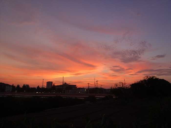 この日は8月29日(金)の18:30。我が家の近くからの西に空の夕焼けです。出かけていた妻が帰宅し、西の空が美しく染まっていると。慌ててカメラを持って外に出る。富士山の姿も確認できた。今年の夏の気温は毎日35度超えが続くのであった。さらに湿度が高い日が続いているのであった。つまり大気中の水蒸気が多いので(たとえ湿度の数値は低くても、気温が高ければ大気の飽和水蒸気量が上がるので水分の絶対量は多くなる)、それだけ赤以外の光が散乱されやすく、最も波長の長い赤い光だけが残る。その結果として、雲が真っ赤に染まる美しい夕焼けが生じやすくなるのである。単純に、夏こそ夕焼けが最も美しいと感じているのである。これこそが最大の理由なのです。夕焼けは俳句では秋ではなく夏の季語。昔の俳人たちが、ちゃんと観察していたからこそでしょう。もう一つのポイントは、夏には西空だけでない、他の方位の雲までが染まるチョット大げさですが「全方位の夕焼け」が見られるのです。我が家の周辺は、残念ながら水田や池はありませんが、あれば夕焼けに染まる水面の光景も見えるはずです。夏場の夕焼けは赤が強く茜色に染まることが多いですが、冬場は黄金色の夕焼けがよく見られます。なぜこのように見え方が変わるのでしょうか。繰り返しになりますが「夏と冬の夕焼けの色が違って見えるのは、空気中に含まれる水蒸気の量が関係しています。空気中の水蒸気が多いと、波長の短い光は散乱してしまい、波長の長い赤色光が散乱されずに目に届きやすくなります。そのため、夏の夕焼けは冬よりもいっそう赤色が強まって見えるのです。とくに台風の接近前や通過後などは、空気中の水蒸気がより一層多いので、赤色が濃くなった燃えるような夕焼けや、不気味とも感じられる紫色に近い夕焼けが見られることもあります。一方、空気が乾燥して水蒸気が少ない冬の夕焼けは、赤色に比べて波長が短い黄色やオレンジ色の光も散乱されずに届きやすくなります」とネットから。富士山の姿をズームして。夏の夕焼けの主な特徴は・強い赤色やピンク色、紫色: 夏の空気は水蒸気量が多いため、太陽光が届くまでに波長の短い光が散乱され、波長の長い 赤い光が残りやすくなります。このため、夏は特に赤が強調され、ピンク色や不気味な紫色に 近い色合いになることもあります。・雲が赤く染まる: 湿度が高く水蒸気が多いと、その水蒸気によって光が散乱され、雲が赤く染まります。 そのため、夏には雲が幻想的に彩られる夕焼けが多く見られます。燃えるような夕焼け: 特に大気中の水蒸気が多い台風接近前や通過後などでは、色がさらに濃くなり、燃えるような 美しい夕焼けが見られることがあります。・美しさの条件 適度な雲: 夕焼けを赤く染めるには、ある程度の雲が必要不可欠。 水蒸気とチリ・埃: 夏の高い湿度は水蒸気量を増やす要因。 水蒸気に加えて、空気中の塵や埃も光を散乱させることで、空全体がふんわりと赤く染まる のを助けますじわじわと赤い色が薄くなって。そして東の空には。そして18:32。「夏の夕」、「夏の宵」を楽しんだのであった。 一般的な「夕焼けの言い換え」をネットで調べてみました。・夕陽(ゆうひ)/ 夕日(ゆうひ):太陽が沈む際に空が赤く見える現象そのものを指します。・落日(らくじつ):地平線に沈む太陽、日没を意味します。・残陽(ざんよう)/ 斜陽(しゃよう):沈みゆく夕日、あるいは夕暮れの太陽を指します。・逢魔が時(おうまがとき) / 黄昏(たそがれ):日が暮れて空が薄暗くなる頃を指し、 詩的な表現としても使われます。 と。 ・・・おわり・・・