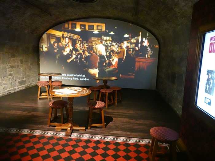 アイリッシュ・パブの伝統的な音楽セッションの様子を展示として再現した空間。「Eating and DrinkingThe Irish have made significant contributions to the world of food and drink and the Irishpub is a standard for genial hospitality and friendly socialising throughout the world.Although food in Ireland benefits from outstanding fresh ingredients, for members of the Diaspora, the taste of home is just as likely to be cheese and onion crisps, invented inIreland in the 1950s.While Irish food and drink have travelled the world, making whiskey and soda breadfamous, the Irish Diaspora has also contributed to the menus of others in othercountries. A number of French wine houses were founded by Irish emigrants or their descendants, e.g. the group known as the Wine Geese, while the French cognac houseHennessy was established by Richard Hennessy, an Irish officer in the army of Louis XV.」 【食と飲み物アイルランド人は、食と飲み物の世界において重要な貢献をしてきました。そしてアイリッシュ・パブは、世界中で温かなおもてなしと友好的な交流の象徴とされています。アイルランドの料理は、優れた新鮮な食材に恵まれていますが、ディアスポラ(海外に移住したアイルランド人)の人々にとっては、故郷の味といえば、1950年代にアイルランドで発明された「チーズ&オニオンクリスプ(ポテトチップス)」かもしれません。アイルランドの食や飲み物は世界中に広がり、ウイスキーやソーダブレッド(ソーダパン)を有名にしました。また、アイルランド系ディアスポラは、他国の料理メニューにも影響を与えてきました。たとえば、フランスのいくつかのワインハウスは、アイルランド出身の移民やその子孫によって設立されたもので、「ワイン・ギース(Wine Geese)」として知られるグループもあります。さらに、フランスのコニャック・ブランド「ヘネシー」は、ルイ15世の軍に仕えていたアイルランド人将校リチャード・ヘネシーによって創設されました。】アイルランドの伝統的なパブの内部を再現した展示空間。石造りのアーチ天井と木製のカウンター、壁の装飾、丸テーブルとスツール(背もたれのない椅子)、天井からのペンダントライトなど、雰囲気のある内装が特徴。現代アイルランドのアーティストやクリエイターたちを紹介する展示空間。左側:・ELIZA GRIFFOREX(イライザ・グリフォレックス) → 白黒の線画(風景画)と思われる作品が展示されています。・PHILIP TREACY(フィリップ・トレイシー) → オレンジ色の大きな帽子をかぶった人物の写真。彼は世界的に有名なアイルランド出身の 帽子デザイナーです。正面(映像): ・映像スクリーンには、カラフルなヘッドドレスをつけた人物が映されています (おそらくファッション系の展示の一部)。右側:・EDWARD QUINN(エドワード・クイン) → 海岸または砂浜に立つ人物のような写真。彼は主にモナコを拠点に活動したアイルランド人 写真家で、芸術家や著名人のポートレートで知られています。・ORLA KIELY(オーラ・キーリー) → 色とりどりのパターン柄。アイルランドを代表するテキスタイル&ファッションデザイナーで、 ミッドセンチュリー風の柄が特徴です。この展示は、「アイルランドの創造性」や「現代芸術」をテーマにしたセクションであり、アート、ファッション、写真、デザインといった分野で国際的に活躍するアイルランド系アーティストを紹介していたのであった。アイルランド出身の写真家 Edward Quinn(エドワード・クイン) に関する展示。グレース・ケリー(モナコ公妃)と思われる人物のポートレート写真が大きく表示されており、これはエドワード・クインが撮影した有名な写真の一つです。彼は1950年代から60年代にかけて、ヨーロッパのセレブリティ文化、特にフランス・モナコの上流階級を撮影したポートレート写真で知られています。第16ギャラリー「Creating and Designing(創造とデザイン)」に展示されているアイルランド系および国際的な芸術家を紹介するコーナー。左:FRANCIS BACON(フランシス・ベーコン) ・出身:1909年 ダブリン生まれ(イギリス系アイルランド人) ・職業:画家(特に20世紀を代表する具象表現主義) ・作風: ・歪んだ人体や苦悶の表情など、強烈で感情的なポートレートが特徴 ・死、暴力、存在の不安などを主題とする・展示作品(推定): ・《Self-Portrait》(自画像)あるいは《Head》シリーズのひとつ ・重層的な筆致と歪曲表現により、内面の不安や人間存在を描く右:JUAN O'GORMAN(フアン・オゴルマン)・出身:1905年 メキシコ生まれ(父がアイルランド人移民)・職業:画家・建築家・功績: ・メキシコのモダニズム建築と壁画運動を支えた重要人物 ・ディエゴ・リベラ、フリーダ・カーロとも交流・展示作品: ・自画像を中心に、複数の人物と建築的背景を織り交ぜた構成 ・教育、芸術、建築への深い関与を視覚的に語る壁画的スタイルフランシス・ベーコン(Francis Bacon) に関する説明パネル。「FRANCIS BACONFrancis Bacon was born in Dublin in 1909 to English parents. He grew up in Kildare, but left Ireland at 17.Widely acknowledged as one of the most important painters of the 20th century, Bacon’s work is concerned wit