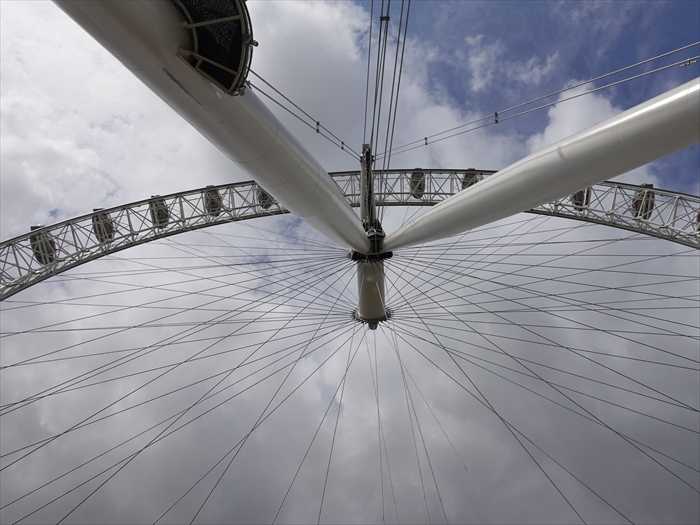 「ロンドン・アイ(London Eye)を真下から見上げて。・中央の白い巨大な支柱 ロンドン・アイを支える主軸部分。観覧車の片側から斜めに支えが伸びる「片持ち式構造 (カンチレバー式)」になっているのが特徴。・放射状のワイヤー(ケーブル) 自転車の車輪のスポークのように張られており、リム(外周の観覧車部分)を安定させて います。 → ロンドン・アイは世界最大級の「スポークホイール型観覧車」として有名。・外周のゴンドラ 上部に沿ってガラスカプセルが連なっているのが見えた。・ロンドン・アイは片側支持方式(片持ち構造)で支えられており、観覧車全体を一方の支柱から 引っ張る形。・スポーク(鋼鉄ケーブル)は片側から張られているため、巨大な自転車のホイールのような 美しいデザインが強調されている。「ロンドン・アイ(London Eye)の搭乗ゲート付近には長い列が。移動して「ロンドン・アイ(London Eye)」を真下から再び見上げて。・中央の支柱とハブ(回転軸) ロンドン・アイは片持ち式(カンチレバー構造)で支えられており、片側から巨大な支柱が 伸びています。写真の中央に見える「円筒部分」が回転の中心軸。・放射状のケーブル(スポーク) 自転車の車輪のように外周へ放射状に張られたケーブル。 これがリム部分を支え、観覧車の安定性を保っている と。「ロンドン・アイ(London Eye)」の搭乗エリアのすぐ横にある「London Eye Pier(ロンドン・アイ桟橋)」の入口 を見る。・中央の青い案内板 「Boat Ticket Sales & Pier Entrance」と書かれており、ここが テムズ川クルーズ船の桟橋入口。・ロンドン・アイ・ピア(London Eye Pier) ・位置: ロンドン・アイの直下、テムズ川沿い。 ・運営: Uber Boat by Thames Clippers(高速船サービス)。 ・利用: ・観光用のリバークルーズ ・通勤通学向けの定期船(東はグリニッジ、西はパットニー方面まで) ・特徴: 観覧車を楽しんだ後に、そのまま川からロンドンを眺める観光ルートとして人気。テムズ川越しに「ホワイトホール・コート(Whitehall Court)」を望む.・建設: 1884年・様式: フレンチ・シャトー風のヴィクトリア朝建築・現在は「ロイヤル・ホースガーズ・ホテル(The Royal Horseguards Hotel)」や 高級マンションとして使用されている と。ズームして。「Knife Edge Two Piece(ナイフ・エッジ・ツーピース)」 という抽象彫刻。・作者: ヘンリー・ムーア(Henry Moore, 1898–1986) 20世紀を代表するイギリスの彫刻家。人体をモチーフにした抽象作品で知られます。・作品名: Knife Edge Two Piece(ナイフ・エッジ・ツーピース)・制作年: 1962–65年頃・材質: ブロンズ・設置場所: ロンドン・アイやカウンティ・ホール近くのサウスバンク遊歩道「JUBILEE ORACLEBY ALEXANDER 1980Mankind is capable of an awarenessthat is beyond the limits of everyday life.My monumental sculptures are createdto communicate with that awarenessin a way similar to classical music.Just as most symphonies are not meantto be descriptive, so these works do notrepresent figures or objects.— Alexander」 【ジュビリー・オラクルアレクサンダー作 1980年人類は、日常生活の範囲を超えた「気づき(意識)」を持つことができる。私のモニュメンタル・スカルプチャー(大規模な彫刻)は、その気づきと対話するために創られたものである。それはクラシック音楽と同じような方法で行われる。ほとんどの交響曲が写実的に何かを描写するためのものではないように、これらの作品も人物や物体を表すものではない。— アレクサンダー】ロンドン・アイ(London Eye)とウェストミンスター宮殿(国会議事堂)、ビッグ・ベン(エリザベスタワー) を同時に捉えて。前方に現れたのが 「ゴールデン・ジュビリー・ブリッジ(Golden Jubilee Bridges)」。・種類: 歩行者専用の吊り橋(ツインブリッジ)・完成: 2002年(エリザベス女王在位50周年「ゴールデン・ジュビリー」を記念して建設)・場所: ・中央にある鉄道橋 「ハンガーフォード橋(Hungerford Bridge)」 を挟 む形で両側に架けられた歩道橋。 ・テムズ川を渡り、サウスバンク(ロンドン・アイやカウンティ・ホール 側)とノースバンク(チャリング・クロス駅付近)を結んでいる。テムズ川越しに ウェストミンスター宮殿(国会議事堂)とビッグ・ベン(エリザベス・タワー) を望んだ風景で、手前に写っているのは 「Westminster Pier(ウェストミンスター桟橋)」。ピア(Pier)とは桟橋・船着、ロンドン中心部観光(国会議事堂・ロンドン・アイなど)と結びついた交通拠点となっていると。その先にあったのが、Hungerford Bridge(ハンガーフォード橋)と、その両側に付設された Golden Jubilee Bridges(ゴールデン・ジュビリー・ブリッジ:歩行者橋)。・中央の黒い鉄橋部分 これは鉄道橋 Hungerford Bridge で、南側の Waterloo Station(ウォータールー駅) と北側の Charing Cross Station(チャリング・クロス駅) を結んでいる。 1845年に最初の橋が完成し、鉄道用として現在も使われている。・両側の白い斜張構造の歩道橋 これは Golden Jubilee Bridges(ゴールデン・ジュビリー橋) で、2002年に完成した。 名前はエリザベス2世即位50周年を記念したもの。両側に人専用