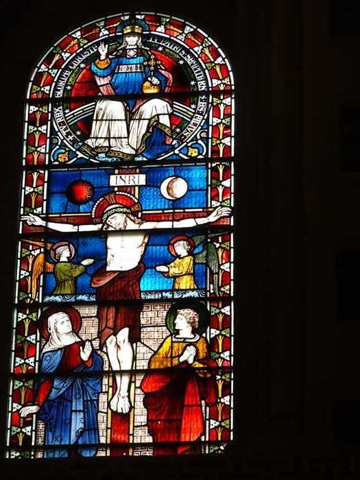 残念ながらChrist Church Cathedral(クライストチャーチ大聖堂)への入堂時間は10時からとのことで、まずはダブリン城に向かったのであった。そしてダブリン城見学の帰路にここの内部の見学をしたのであった。よって続けてここに継続してアップします。Christ Church Cathedral(クリスト・チャーチ大聖堂) を南東側から見上げて。・中央塔(central tower):四角形平面で、上部に4つの角塔と尖った屋根を持つ。 鐘楼としても使用され、鐘は観光ツアーでも見学可能。・後陣(apse)と放射状礼拝堂(radiating chapels):写真右手に見える部分。 円形または多角形の小礼拝堂が後陣の周囲に配置されていた。・バットレス(控え壁)と尖頭アーチ窓:典型的なゴシック様式の外観を形成。・交差部(crossing):塔の下の部分が身廊(nave)と翼廊(transept)の交差点。・石造の質感:中世(12世紀初期創建)からの石材が基礎に残り、19世紀の大規模修復 (ジョージ・ギルバート・スコット設計)による部分も多い。「SERVICESMonday, Wednesday, Friday 10:00 Morning Prayer 12:00 Peace Prayers 12:45 Midday Eucharist 17:00 Evening PrayerTuesday and Thursday 10:00 Morning Prayer 12:00 Peace Prayers 12:45 Midday Eucharist18:00 Choral Evensong Sunday 11:00 The Cathedral Eucharist 15:30 Choral EvensongThere is no charge to attend services.All are welcome!Christ Church Cathedral DublinThe spiritual heart of Dublin」【礼拝スケジュール月曜・水曜・金曜 10:00 朝の祈り(Morning Prayer) 12:00 平和の祈り(Peace Prayers) 12:45 正午の聖餐式(Midday Eucharist) 17:00 夕の祈り(Evening Prayer)火曜・木曜 10:00 朝の祈り(Morning Prayer) 12:00 平和の祈り(Peace Prayers) 12:45 正午の聖餐式(Midday Eucharist)18:00 合唱付き夕の礼拝(Choral Evensong)日曜 11:00 大聖堂の聖餐式(The Cathedral Eucharist) 15:30 合唱付き夕の礼拝(Choral Evensong)礼拝への参加費は不要です。どなたでも歓迎します!ダブリン・クリスト・チャーチ大聖堂「ダブリンの精神的中心地」】バロック様式の胸像付きモニュメント。台座部には赤い大理石に刻まれたラテン語の碑文があり、その上に人物胸像と二人の天使(プットー)が彫刻されていた。「Memoriae sacrumTHOMAE PRIOR;Viri, si quis unquam alius, de patria Optime meriti;Qui, cum prodesse mallet quam conspici,Nec in senatum cooptatusNec consiliorum aulae particeps Nec ullo publico munere insignisRem tamen publicam Mirifice auxit et ornavitAuspiciis, consiliis, labore indefesso.Vir innocuus, probus, pius,Partium studiis minime addictus,De re familiari parum sollicitus.」【この記念碑を トーマス・プライアに捧ぐ。もし他に類を見ないほど 祖国に尽くした人物があるならば、まさにこの人である。彼は、目立つことよりも役立つことを望み、元老院に選ばれることもなく、 王宮の評議会に加わることもなく、いかなる公職の栄誉にも輝くことはなかったが、 それでも公共の事業をその指導・助言・絶えざる労苦によって驚くほど発展させ、装った。無垢で、正直で、敬虔な人物であり、党派的な争いに与することは全くなく、私財についてはほとんど関心を持たなかった】 ダブリンのChrist Church Cathedral(クリストチャーチ大聖堂)の内部(ネーブ:中央身廊)を、後方から祭壇方向に向かって。・高いヴォールト天井:交差リブ・ヴォールト(ribbed vault)の構造・二層構造の側壁:下層に大きな尖頭アーチのアーケード、その上にクリアストーリー窓・石造の尖塔アーチと列柱・中央通路両側に並ぶ椅子席(パイプ椅子ではなく木製座席)・奥の祭壇上部にステンドグラス窓さらに近づいて。中央身廊(ネイブ)から内陣(コーラス、聖歌隊席)越しに祭壇と東端の窓を望む。更に近づいて。・手前に見えるのは、コーラススクリーン(Rood Screen)の頂部と、その上に立つ 十字架(磔刑像)。・背後のステンドグラスは、左右2枚の尖頭アーチ窓に区切られ、上から下に3つの場面が 描かれていた。・窓上部中央の円形部分(ローズレット)は石細工で、植物や幾何文様の彫刻。・窓の外枠はゴシック様式特有の装飾アーチ(チェブロン模様)で縁取られていた。内陣のステンドグラス👈️リンクを。左側の窓(上から下へ)・復活のキリスト:白い衣、背後に光輪、両腕を広げた姿。左右に天使または弟子・受胎告知か復活後の出会い:座る青衣の女性(聖母マリアまたはマグダラのマリア)と立つ人物・園の中の祈る姿:樹木と祈る人の構図(ゲッセマネの祈りの場面にも似る)右側の窓(上から下へ)・聖霊降臨:上方中央に鳩(聖霊)、炎と光輪を受ける人々・三賢者の礼拝(東方三博士):贈り物を捧げる場面・子どもたちとキリストまたは幼児洗礼の場面放射状リブ・ヴォールト天井と内陣の側面の連続するステンドグラス窓。天井構造・黒い円柱から放射状に伸びる白いリブが交差し、中央のボスストーンで結ばれている。・リブ間は石材で埋められ、ゴシック様式特有の高い天井。壁面構造・五連の細長い尖頭アーチ窓(ステンドグラス入り)・各窓の間には細い柱があり、上部には小さな装飾アーチ。・中央上部に小さな円形窓(オクルス)が配置され、外光を取り込む。ステンドグラスの内容・左から順に聖人や使徒と思われる人物像。・彩色は赤・青・黄色が強く、19