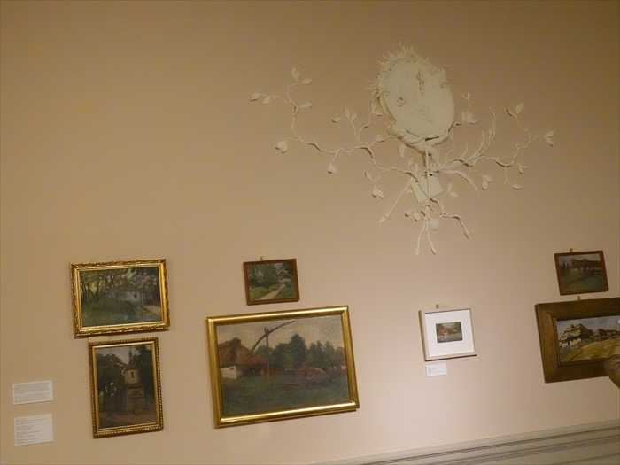 アイルランド風景画や地方の建物を描いた作品群を集めたコーナー。作者はコンスタンスとカジミール両名の可能性があり、それぞれが訪問時に風景を描いた作品が展示されていた。制作時期は特に1902年・1903年の夏で、Żywotówka(現:ウクライナ中部)の家族領地で制作された。近づいて。装飾やレイアウトから見ても19世紀末〜20世紀初頭の作品が多い印象。技法・作風は、厚塗り(インパスト)、鮮やかな色彩、素早い筆致が特徴で、象徴主義・印象主義・社会的リアリズムが融合したスタイルであると解説されていた。「Poland and UkraineIn the summers of 1902 and 1903, Constance and Casimir travelled to his family’s estate in Żywotówka. The region (today in central Ukraine) was then part of theRussian Empire in which the Markievicz family had settled as upper-class Polish landowners.Constance absorbed her Polish family’s tales of historical rebellions and was moved by the conditions of the peasant tenantry. Her growing class consciousness was not met by equal sentiments from Casimir, but they shared an interest in peasant and rural life, themes common in European painting of the period. The thick impasto, vivid colours andquick brushwork of canvasses produced during these visits recall the Markieviczes’ Parisian training.As proponents of modern and European art in Dublin, their own work varied between symbolist, impressionistic, and social realist approaches. Although political upheavalsand waning interests meant neither Casimir nor Constance fully developed a professional painting practice, these works evidence their early ambition for an art that united emotion, colour, expression, and experience of nature.」 【1902年と1903年の夏、コンスタンスとカジミールは彼の家族が所有するジヴォトゥフカの領地を訪れました。この地域(現在のウクライナ中部)は当時ロシア帝国の一部で、マルキエヴィチ家は上流階級のポーランド地主としてここに定住していました。コンスタンスはポーランドの家族から歴史的な反乱の物語を聞き、農民小作人の生活状況に心を動かされました。彼女の高まる階級意識はカジミールと同等の共感を得ることはありませんでしたが、二人は農民や農村生活への関心を共有していました。これらは当時のヨーロッパ絵画に共通するテーマでした。彼らがこの訪問期間に制作したキャンバスは、厚塗りのマチエール、鮮やかな色彩、素早い筆致が特徴で、パリでの美術訓練を思い起こさせます。ダブリンにおける近代・ヨーロッパ美術の支持者として、彼らの作品は象徴主義、印象派、そして社会的リアリズム的な手法の間を行き来していました。政治的激動や関心の薄れにより、カジミールもコンスタンスも本格的な職業画家としての活動を十分に展開することはありませんでしたが、これらの作品は、感情・色彩・表現・自然体験を一体化した芸術を追求した彼らの初期の志を示すものです。】このパネルは「Poland and Ukraine」セクションを含む展覧会の 謝辞(Acknowledgements)。「This project is an initiative of the Embassy of the Republic of Poland in Dublin, marking Poland’s Presidency of the Council of the European Union in January – June 2025, and celebrating the important historical and cultural links between our two countries.We are grateful to all of the private and public lenders to the exhibition: Małgorzata Malkiewicz, Tadeusz Malkiewicz, Libicki family, Edward Walsh and Constance Cassidy, Sir Joslyn Gore-Booth, Dermot and Muriel McAuley, Hugh Lane Gallery, National Gallery of Ireland, Crawford Art Gallery, The Model – Niland Collection, United Arts Club, National Museum of Ireland, Pearse Museum, National Library of Ireland, UCD Special Collections, Public Record Office of Northern Ireland, and the National Library of Poland.Many thanks also to:OPW/Dublin Castle: Rosemary Collier, Katie Morrisroe, Samir Eldin, Angela Cassidy and Dave Hartley; Irish-Polish Society: Patrick Quigley and Jarosław Płachecki; Lauren Arrington; Andrea Lydon; Brian Crowley; Katarzyna Gmerek; Deirdre Kelly; Wanda Ryan-Smolin; David Britton; Jan Filip Libicki; Rafał Wolski; Pamela Cassidy; Artisan Frames; Irish Art Services; and Scully Art Services.Curators:Emily Mark-FitzGerald, University College DublinKathryn Milligan, National College of Art and DesignProject Coordinators:Nikola Sękowska-Moroney, Embassy of the Republic of Poland in DublinWilliam Derham, OPW – Dublin CastleDesign:Vermillion Design」 【このプロジェクトは、ダブリンにあるポーランド共和国大使館の主導によるもので、2025年1月〜6月のポーランドの欧州連合理事会議長国就任を記念し、両国間の重要な歴史的・文化的つながりを祝うものです。展示に出品された作品の私的および公的貸与者に感謝いたします:マウゴジャタ・マルキエヴィチ、タデウシュ・マルキエヴィチ、リビツキ家、エドワード・ウォルシュとコンスタンス・キャシディ、ジョスリン・ゴア=ブース卿、ダーモット&ミュリエル・マコーリー、ヒュー・レーン・ギャラリー、アイルランド国立美術館、クローフォード美術館、ザ・モデル - ニランド・コレクション、ユナイテッド・アーツ・クラブ、アイルランド国立博物館、ピアース博物館、アイルランド国立図書館、ユニバーシティ・カレッジ・ダブリン 特別コレクション、北アイルランド公文書館、ポーランド国立図書館謝辞(追加)OPW/ダブ