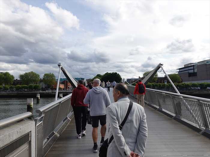 「EPIC The Irish Emigration Museum」の見学を終え、River Liffey・リフィー川に出て「Seán O'Casey Bridge・ショーン・オケイシー橋」を渡る。 左手に見えたのが停泊している帆船「Jeanie Johnston(ジーニー・ジョンストン号)」Jeanie Johnston(ジーニー・ジョンストン号)・オリジナル建造年:1847年(アイルランド大飢饉時代)・用途:移民船として、アイルランドからカナダやアメリカへ移民を運んだ・特徴:この船では一人の死者も出さずに航海を終えたという点で有名・現在の船体:2000年代に復元されたレプリカ・役割:移民の歴史や大飢饉を伝える博物館船として、見学ツアーも実施中その先に見えたのが「Samuel Beckett Bridge(サミュエル・ベケット橋)」。 ・開通年:2009年・設計者:スペインの建築家・技術者 サンティアゴ・カラトラバ(Santiago Calatrava)・形式:斜張橋(cable-stayed bridge)・構造的特徴: ・アイルランドのハープ(アイリッシュ・ハープ)を模したデザイン ・橋自体が90度回転して開閉可能(通航用に可動する)👈️リンク よって、下記のJeanie Johnston(ジーニー・ジョンストン号)は閉じ込められて いないのであった。Jeanie Johnston(ジーニー・ジョンストン号)19世紀のアイルランドからの移民の歴史を象徴する帆船であり、現在はダブリン市内のリフィー川沿いに停泊する博物館船(再現船)として公開されているのであった。・船種 三本マストの木造帆船 高さ32m。・建造年 オリジナル:1847年/再現船:2002年完成・船内では当時の移民の生活や航海の様子を再現。・現在地 アイルランド・ダブリン、リフィー川沿い(カスタムハウス・キー)・用途 オリジナル:移民船(カナダ、アメリカへの移送) 再現船:博物館・教育・文化遺産・元船は10回の航海で2,500人以上の移民を北米へ運びながら、1人の死者も出さなかった。Jeanie Johnston(ジーニー・ジョンストン号)の帆を張った姿をネットから。「Samuel Beckett Bridge(サミュエル・ベケット橋)」から上流側の「The Custom House」のドームを見る。 先ほど訪ねた「Scherzer Rolling Lift Bridges」を再び。 リフィー川(River Liffey)沿いのバス停「Dublin City Centre (Custom House Quay)」に停車するDublin Express(ダブリン・エクスプレス)。 ・表示:「782」「HOTFAST」・行先:Dublin Airport(ダブリン空港)行きオコンネル橋(O'Connell Bridge)を見る。橋の上を複数のダブリンバス(緑・黄色)が走行中。ダブリンのオコンネル通り(O’Connell Street)南端付近を北向きに見た景観。中央の灰色の建物はFormer National Bank Building。・所在地:オコンネル・ストリートとダーメ・ストリート(D'Olier Street)の交差点角・建設年:1890年代・建築様式:フレンチ・ルネッサンス様式(屋根の急勾配や石材の装飾が特徴)・用途の変遷: ・元はNational Bank(ナショナル銀行) ・その後Ulster Bankとして使用され、現在はレストランや商業施設として再活用されています左側の像:Henry Grattan(ヘンリー・グラタン)像・Henry Grattan Monument・場所: College Green(トリニティ・カレッジ正門の向かい)・除幕: 1876年・設計: John Henry Foley により制作開始、完成は Thomas Brock・構成: ・中央にヘンリー・グラタンの立像 ・台座には4体の寓意像(自由、信教、統治、国家)そして、赤レンガの塔屋が目を引くのはIrish Nationwide Building Society旧本店。ダブリン市中心部(オコンネル通り周辺)から見た、アビー教会(Abbey Presbyterian Church)方面の景観。中央奥:St Andrew's Church(セント・アンドリュー教会) ・建設年:1860年竣工(現建物、何代目か) ・建築様式:ヴィクトリアン・ゴシック様式 ・特徴: ・高く鋭くそびえる尖塔(スパイア) ・灰色の石材で構成された重厚な外観 ・アーチ窓、バットレス、装飾的な彫刻が施された正面ファサード ・現用途:現在は教会としての機能はなく、観光案内所(Dublin Tourist Office)や 展示イベント会場などに使用されています。右側:かつてのUlster Bank(アルスター銀行)本店ビル ・重厚な石造ルネサンス様式建築左側:1970年代のコンクリート系モダニズム建築(市庁舎関連またはオフィスビル)ギフト ショップ・Carrolls Irish Giftsに立ち寄る。自分用そして土産用のCAP・帽子他を購入。アイルランド国内、特にダブリン市内に多数の支店がある土産店チェーンであると。主に観光客向けのアイリッシュギフトを取り扱っており、以下のような商品が人気 ・アランセーターやTシャツ ・クローバーやケルト文様の雑貨 ・ギネス関連商品 ・アイリッシュチョコレート、紅茶、雑貨などダブリン中心部、セント・アンドリュー通り(St Andrew Street) にあるモニュメントMonument Name: Crann an Oir(クラン・アン・オール/金の木)・アーティスト:Eamonn O'Doherty(エイモン・オドハーティ)・設置年:1991年・素材:金属(主にブロンズ製)、石(アーチ部分)英語名:“Tree of Gold”そしてアイルランド・ダブリンで最も有名なパブの一つ The Temple Bar(ザ・テンプル・バー)へ。真っ赤な外観と壁一面の花飾りで非常に目立つ夜間はイルミネーションで装飾されており、観光写真の定番スポット店名が「THE TEMPLE BAR」と店の外壁・赤い看板に複数箇所に記載されていた1840年創業の老舗パブ