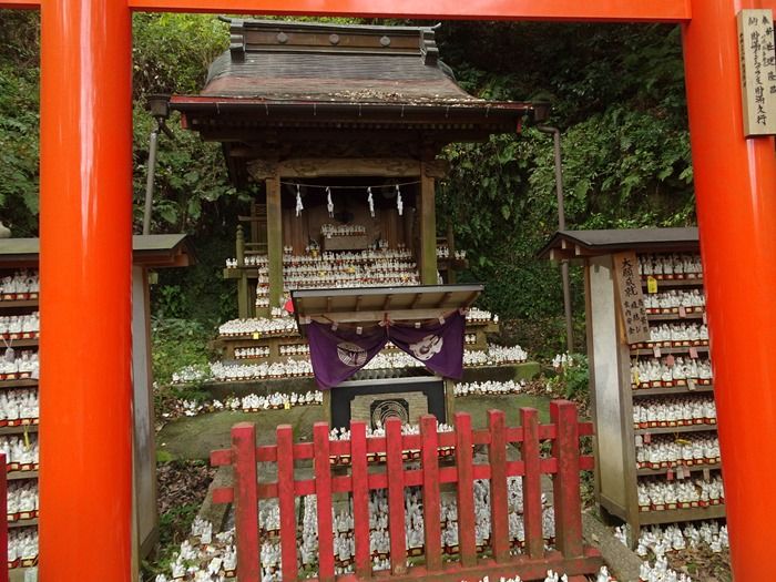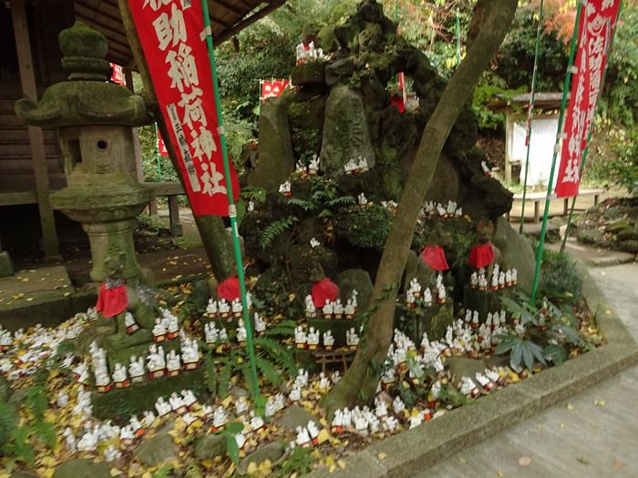 拝殿横にはこれも数え切れないほどの小さな狐様が奉納されていた。