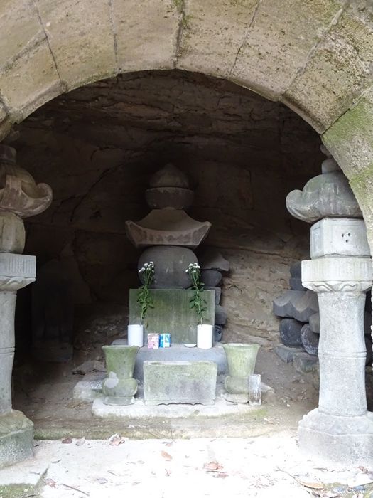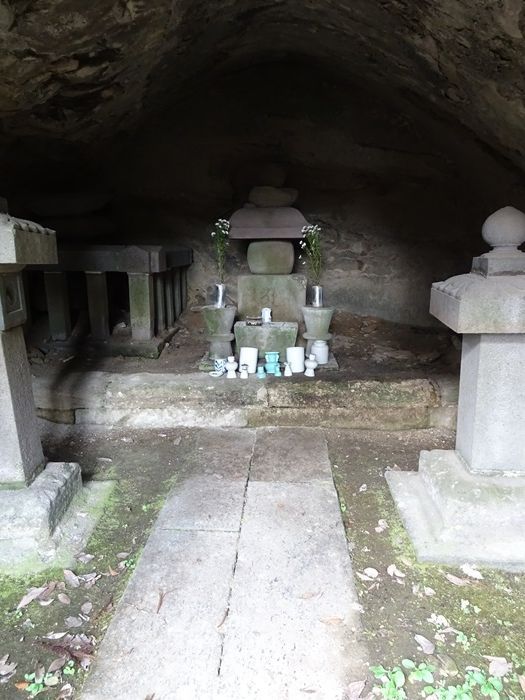 墓から階段を降ると平場になっており、右側にやぐらが。中には墓石らしき物と共に、