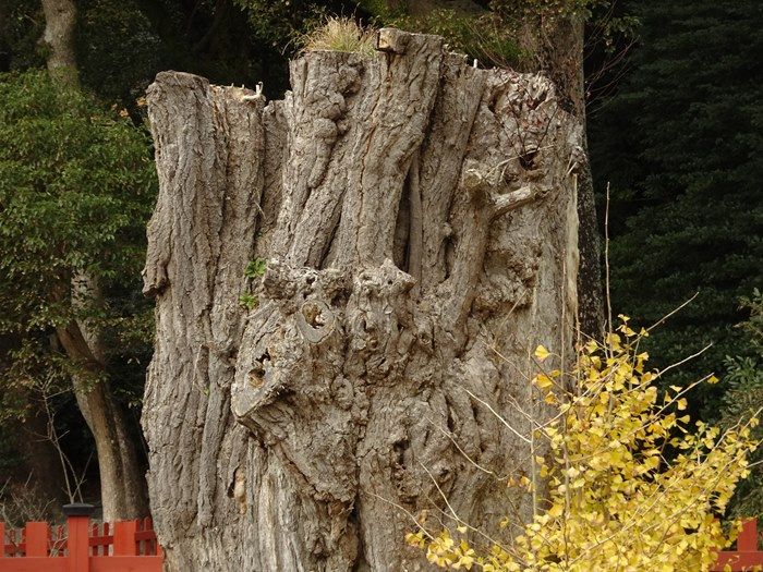 鎌倉幕府の三代将軍・源実朝が暗殺されたときに、暗殺者(実朝の甥の公暁)が、この木の陰に