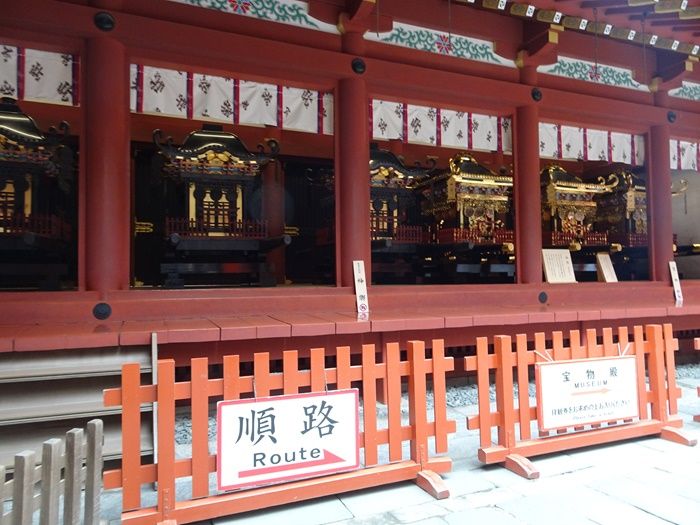 宝物館手前には巨大な神輿が並んでいた。