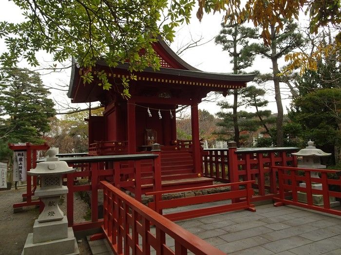 のちに、奥州平泉で自刃した源義経を祭神として祀ったことから、白旗神社と呼ばれるように