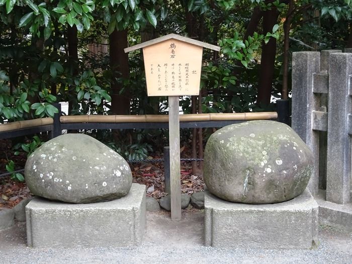 白旗神社の手前には、「鶴亀石」という2つの大きな石が祀られていた。