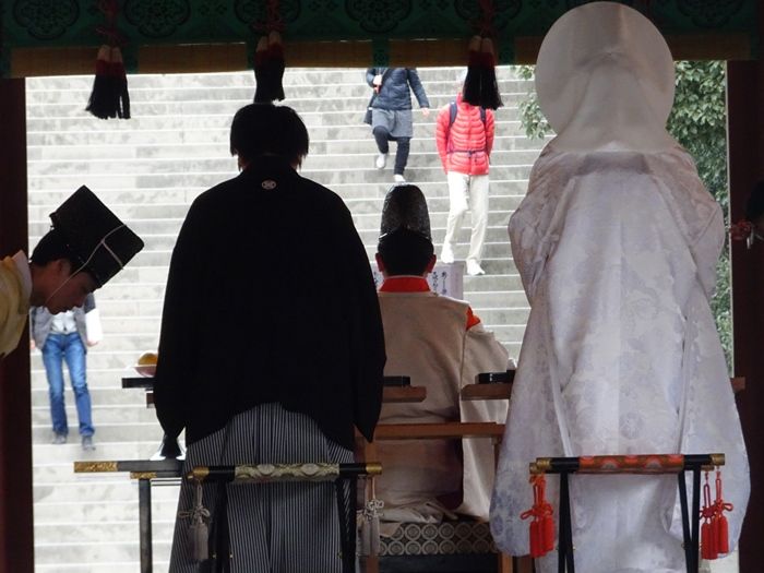 この日は舞殿で結婚式が行われていた。