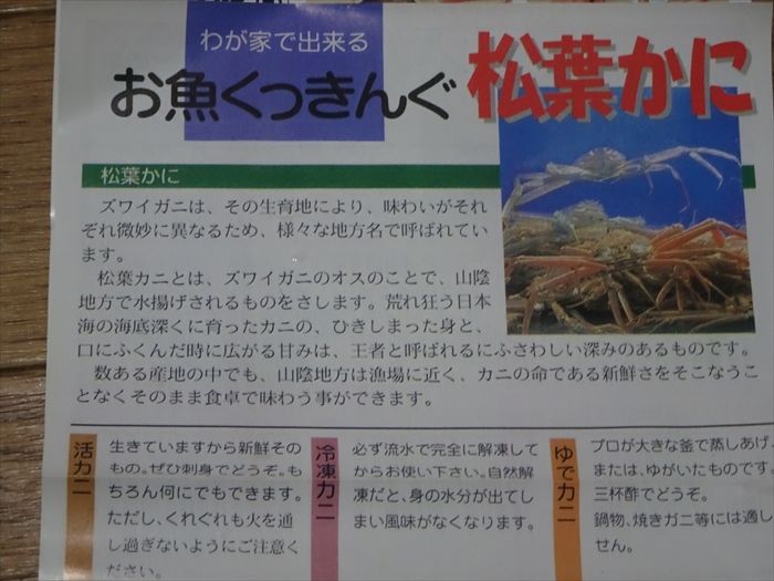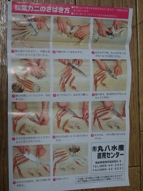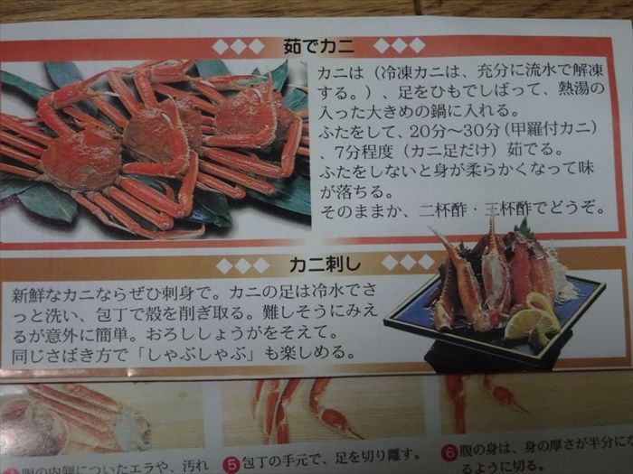 『松葉カニのさばき方』も写真入りで懇切丁寧に。
