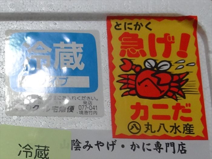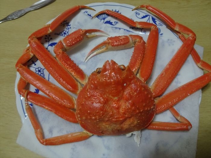 とのことで到着、大きさ、品質を心配していたのですが無事大きめの元気な『松葉ガニ』が