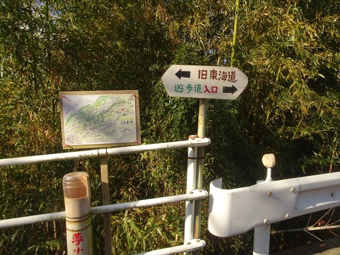 国道1号線には『三ツ谷の夢小路』遊歩道入口の案内図が。
