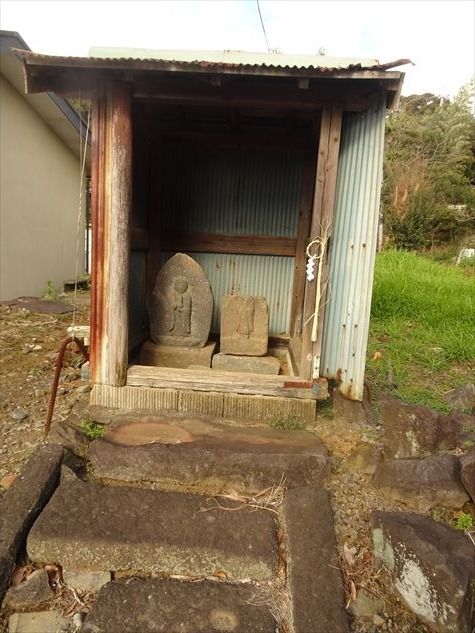 旧街道の石畳道に入って直ぐ右側に馬頭観音等が4基祀られている祠が建っていた。