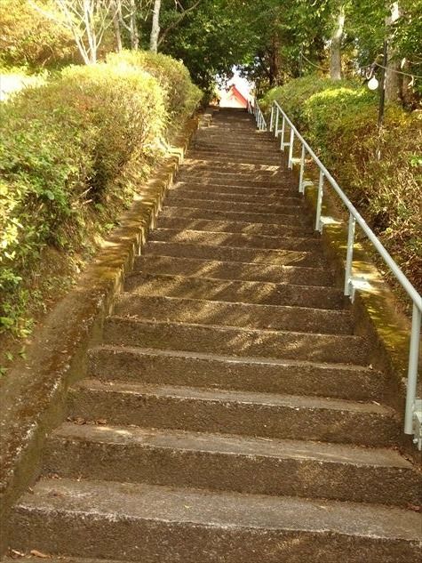 社殿への急な階段を上る。