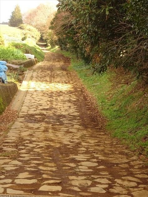 旧街道の『上長坂』の石畳道を振り返る。