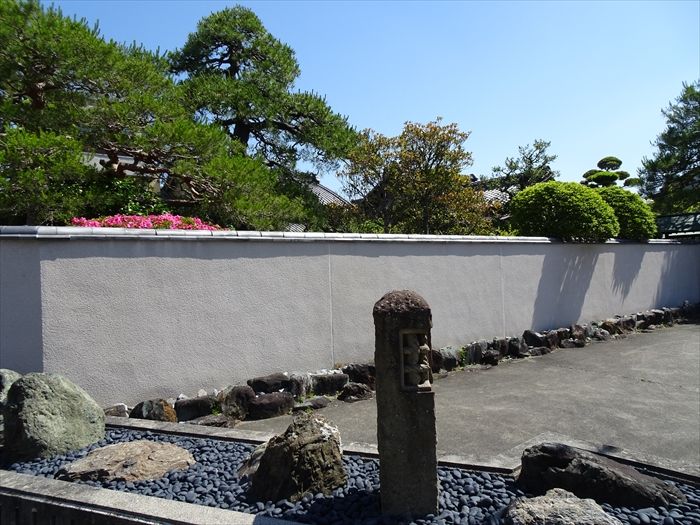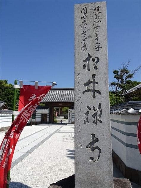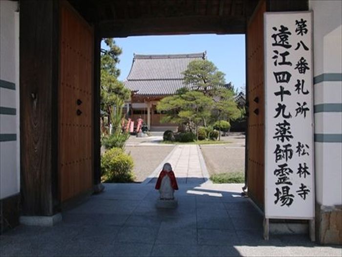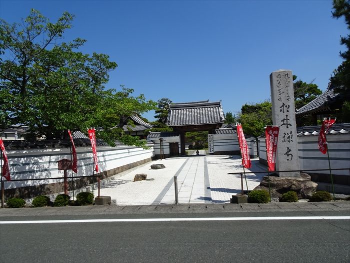 『松林寺』の文字が瓦屋根のある白壁の上に。