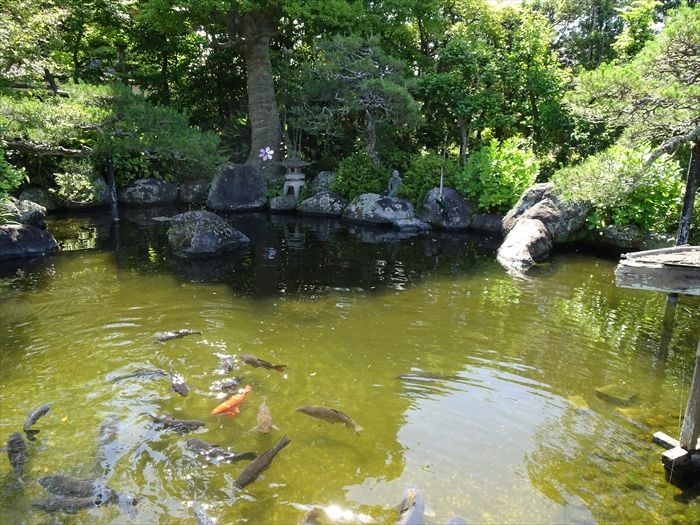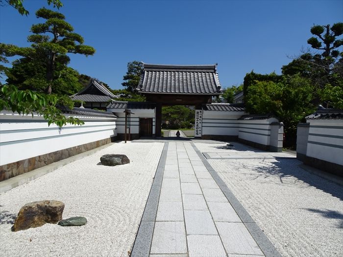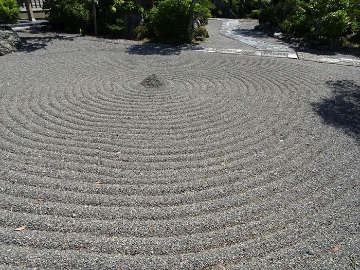 薬師堂前の枯山水の波心庭(はしんのにわ)。