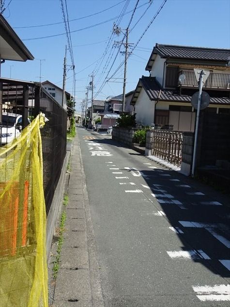 馬込川沿いの木戸から東海道の南側を走り、この地点で道を北側に横切り、道沿いの家屋の