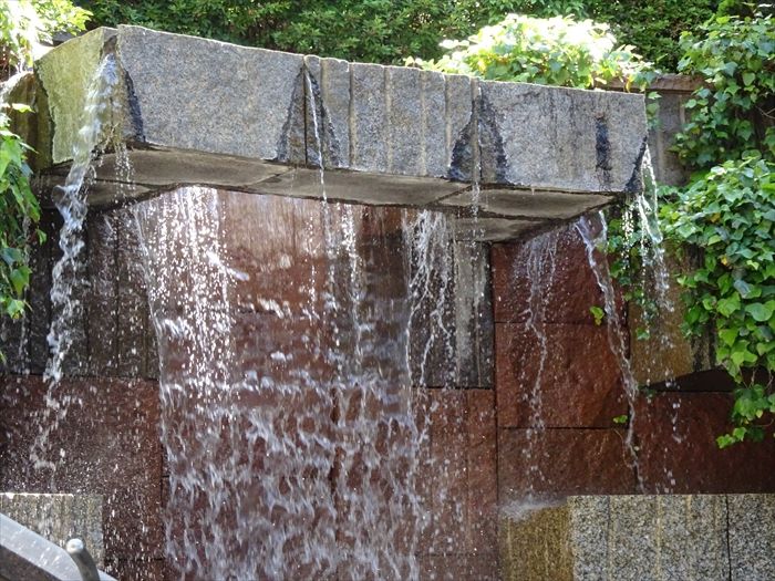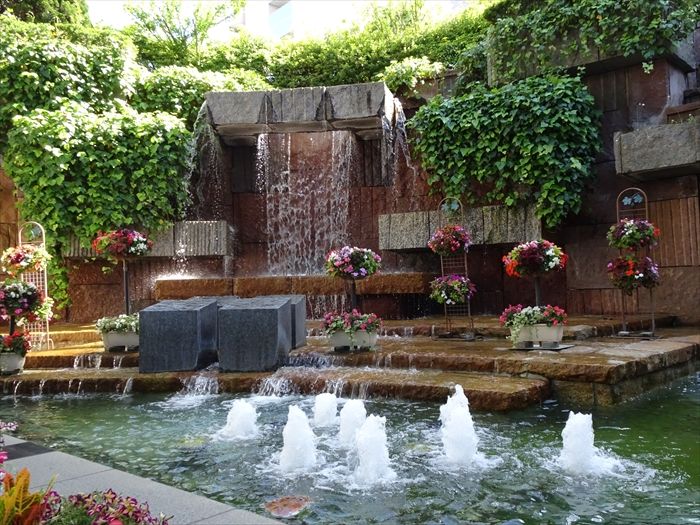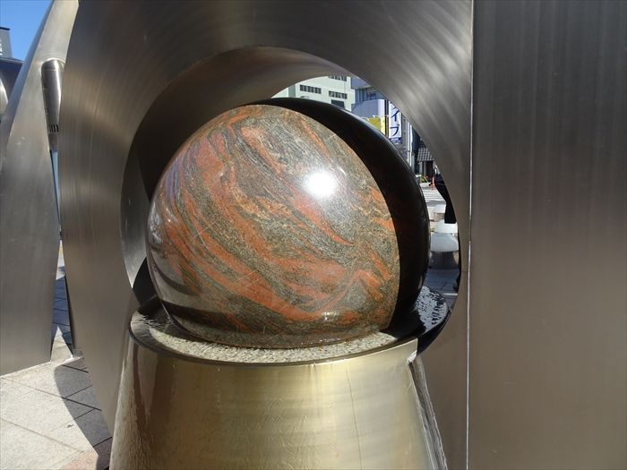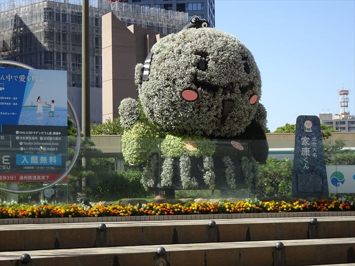 浜松市のゆるキャラ・出世大名「家康くん」の「モザイカルチャー」のある噴水前。