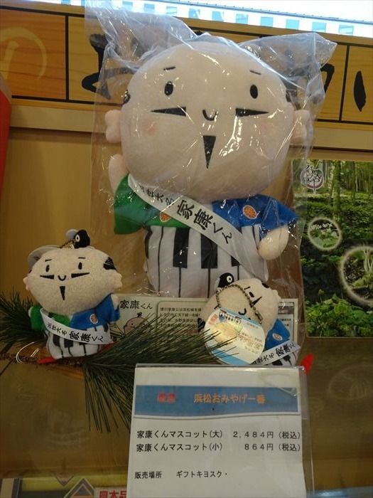 浜松市のゆるキャラ・出世大名「家康くん」人形もお土産に販売中。