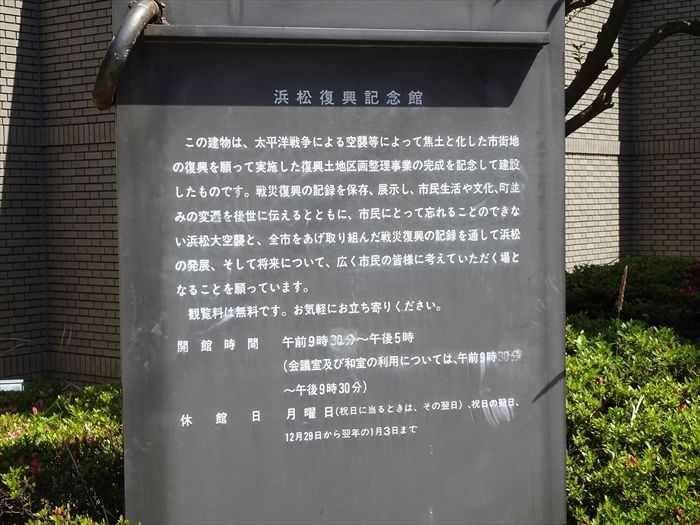 浜松復興記念館は、この事業の完成を記念して昭和63年に開館しました。