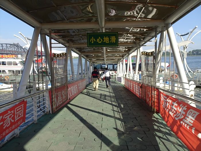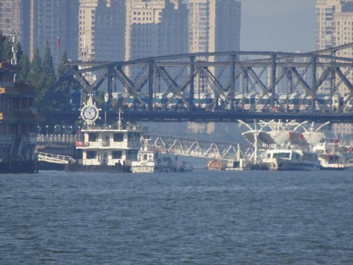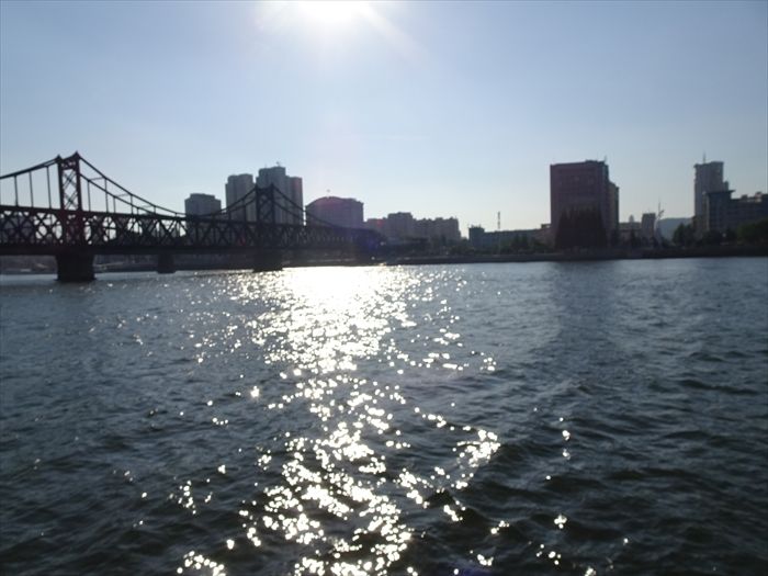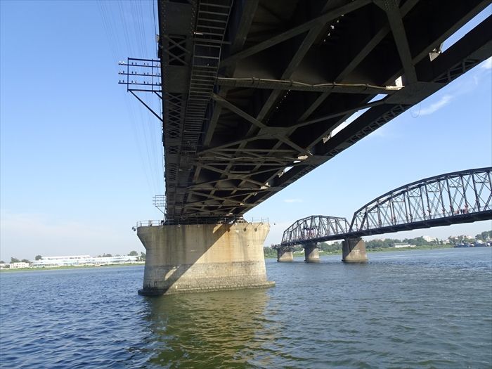 まずは『鴨緑江断橋』そして『中朝友誼大橋』の下をくぐり上流方向に船は進む。