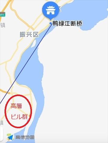 理由は『鴨緑江』が正面から左に大きく蛇行しているから、北朝鮮側と見えるのであった。