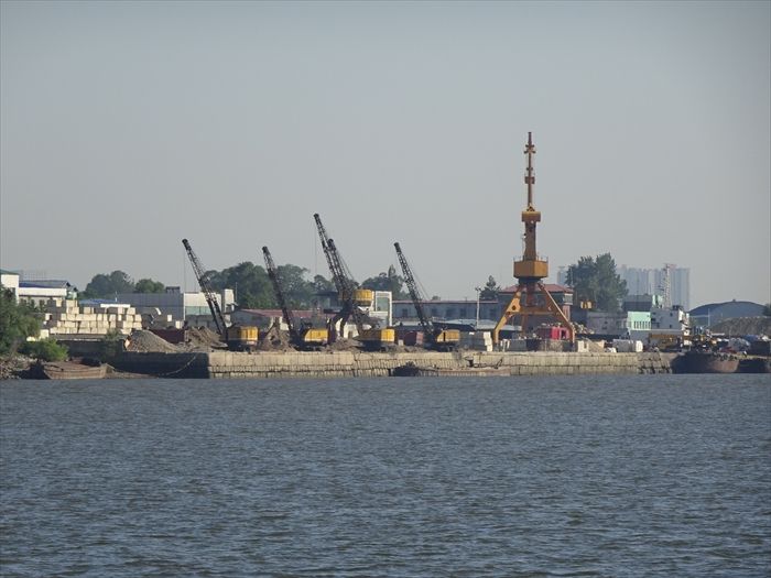 遠くに白い橋の塔が見えたが、工事中なのであろうか。