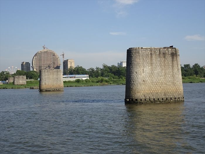 再び『鴨緑江断橋』の残されたコンクリート橋脚を見る。