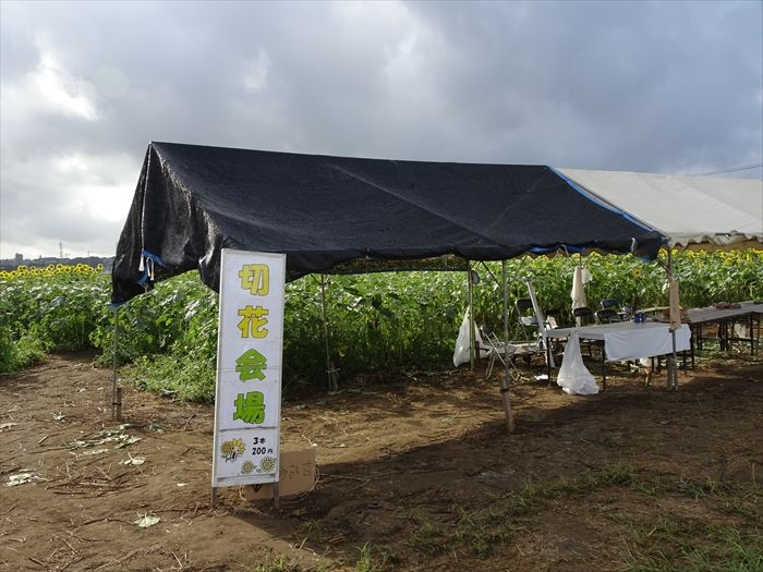ひまわりの花も自分で切って購入可能と。