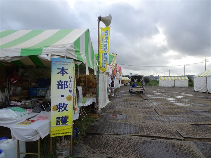 「ざまりん広場」にはひまわりまつりの本部テントが。