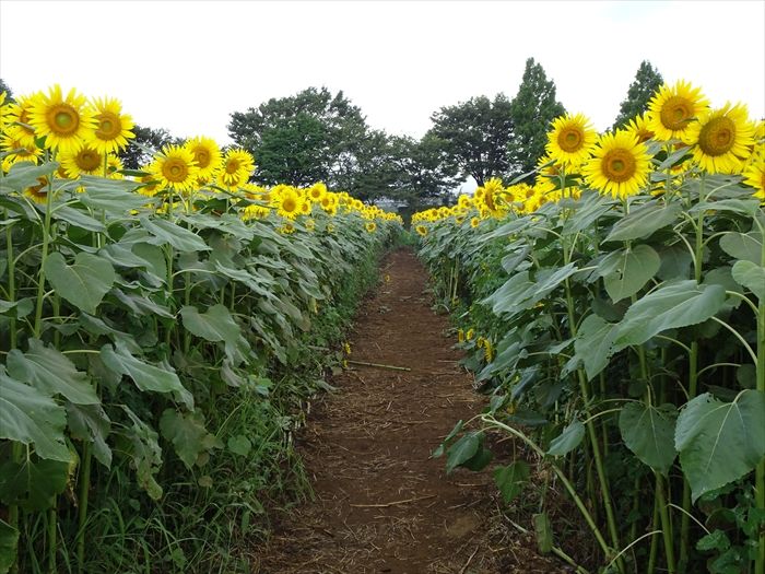 ひまわり畑の中の散策路を歩く。