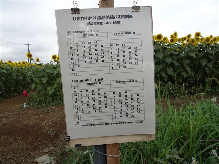 『ひまわりまつり臨時路線バス時刻表』。