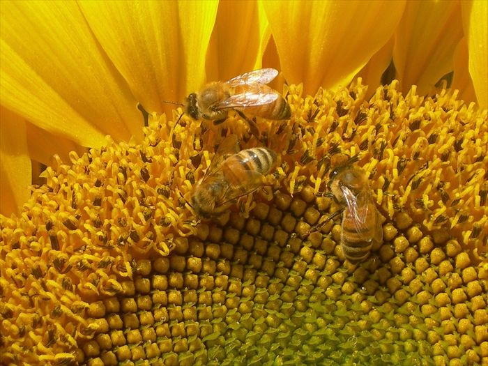 多くの西洋ミツバチが訪花中。