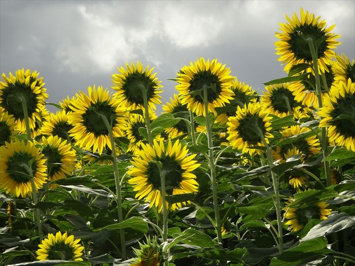 背中を見せるひまわり達。