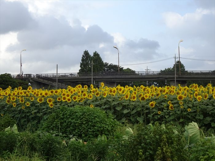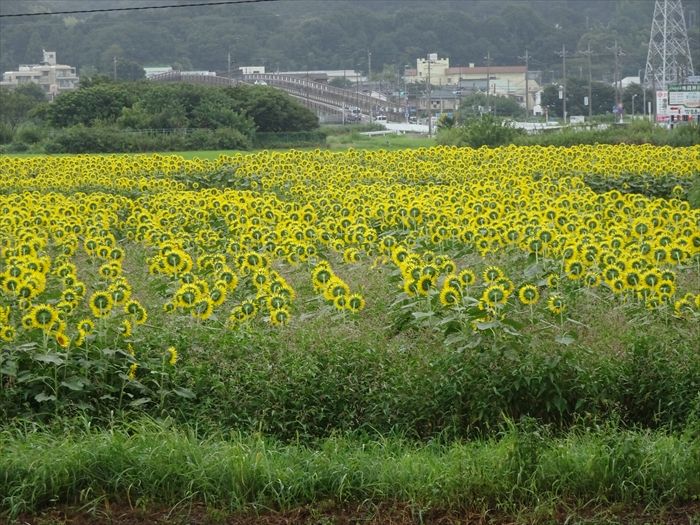 県道42号線が相模川を渡る座架依橋(ざかえばし)の袂近くからひまわりまつり会場を。
