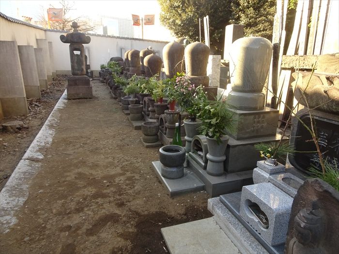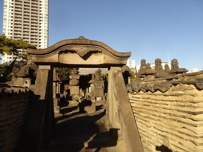 瓦積の土塀に囲まれた598㎡の墓域は都内の大名墓域としては有数の広さで、