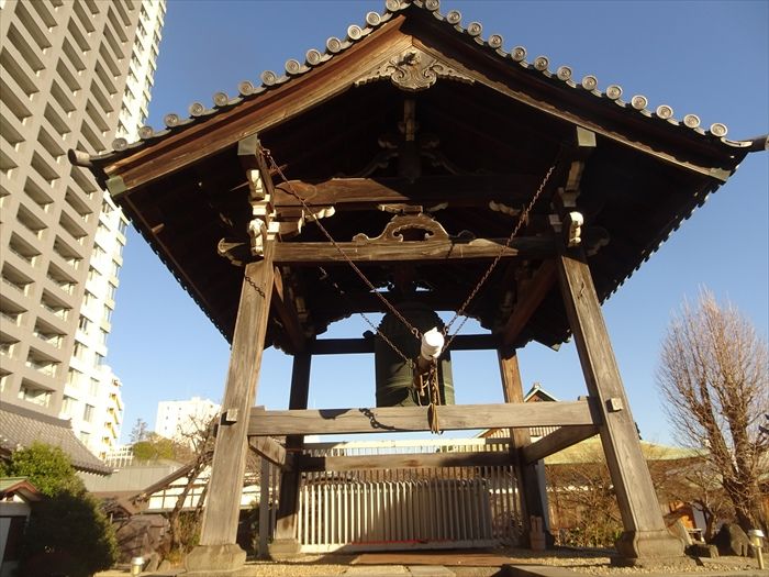 鐘楼にある東海寺梵鐘は元禄5(1692)の鋳造で総高198㎝、口径106㎝。