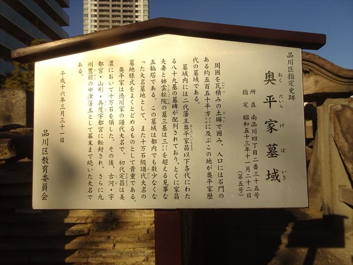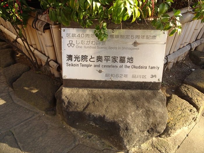 入口には『しながわ百景 清光院と奥平家墓地』の案内板が。