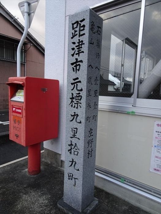 そしてポストの横には『距津市原標九里十九町』と刻まれた道標も。