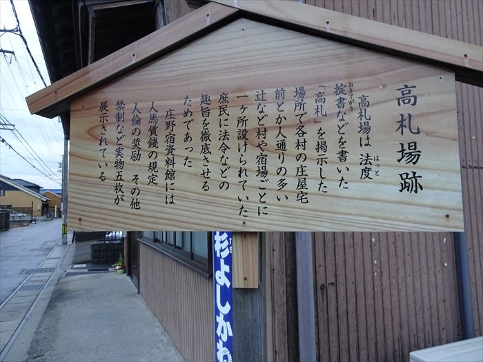高札場は、法度掟書などを書いた 「高札」 を掲示した場所で、各村の庄屋宅前とか人通りの