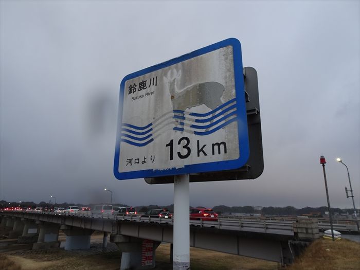 ここは鈴鹿川の河口より13km上流の場所であると。